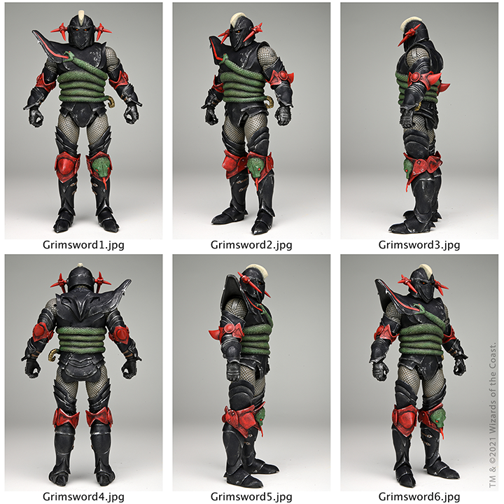 Presented in Ultimate-style packaging , the Dungeons & Dragons Ultimate Grimsword stands approximately 7-inches tall and is fully articulated. His signature accessories include shield, ball and chain, and sword.