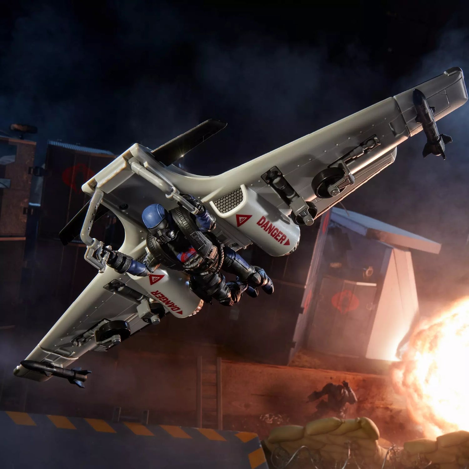 Cobra Pilots are basic infantry "grunts" with wings, with nothing to lose and everything to gain in battle. Cobra Pilot & Cobra C.L.A.W. (Covert Light Aerial Weapon) figure and vehicle set includes Cobra Pilot with 9 accessories, including removable helmet, 2 alternate heads, figure stand, and weapon accessories. The Cobra C.L.A.W. vehicle features retractable landing gear with manually rolling wheels; pivoting canards, ailerons, and wing tips; swiveling turret with barrel that articulates up and down; 2 jet thruster blast effects; and 2 missile accessories.