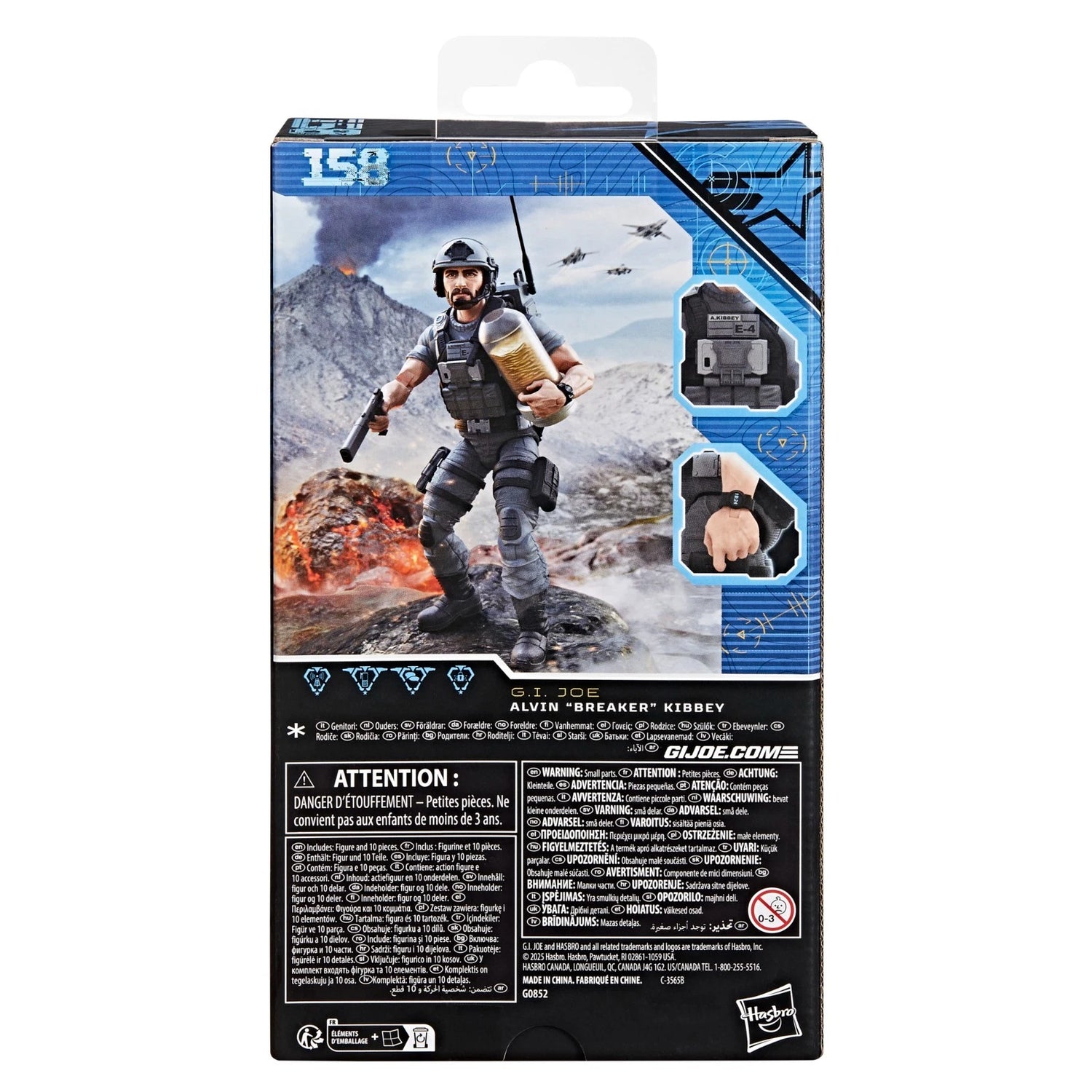 G.I. Joe is a highly skilled, on-demand, special operations force of men and women from around the globe tasked with defending the world from Cobra, a ruthless criminal organization bent on total domination. The brave members of G.I. Joe are prepared to seek out Cobra in any environment on the planet. From hostile jungles to ice-clad arctic peaks…wherever there’s trouble, G.I. Joe is there. New to the G.I. Joe Classified Series line, Alvin ""Breaker"" Kibbey comes ready for adventure, with multiple points of articulation for high poseability. This Alvin “Breaker” Kibbey figure contains 10 character-inspired accessory pieces including communications pack, helmet with headset, alternate bubble gum-blowing head, knife, and weapon accessories, as well as the metallic ore catalytic element extracted from a meteorite buried inside the Devil's Cauldron within the Ring of Fire.