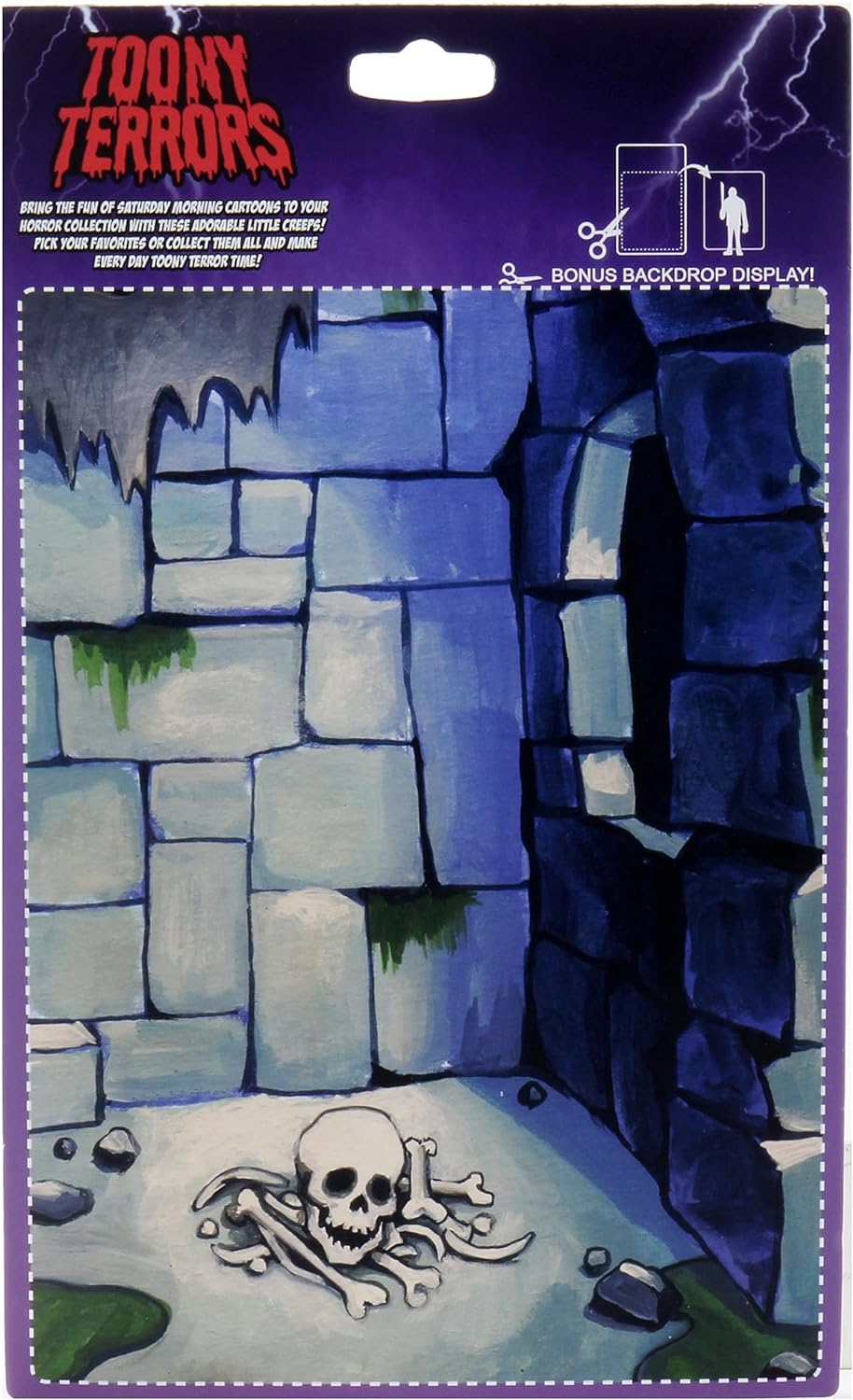 This Toony Terror features the loveable mascot and host from the comedy horror classic Creepshow, the Creep. The cute creep has been crafted in 6” scale in the terrifyingly-adorable Toony Terrors design, mixing classic horror icons with cartoonish style, and comes complete with a lantern accessory and a themed cutout backdrop for an extra creepy display.