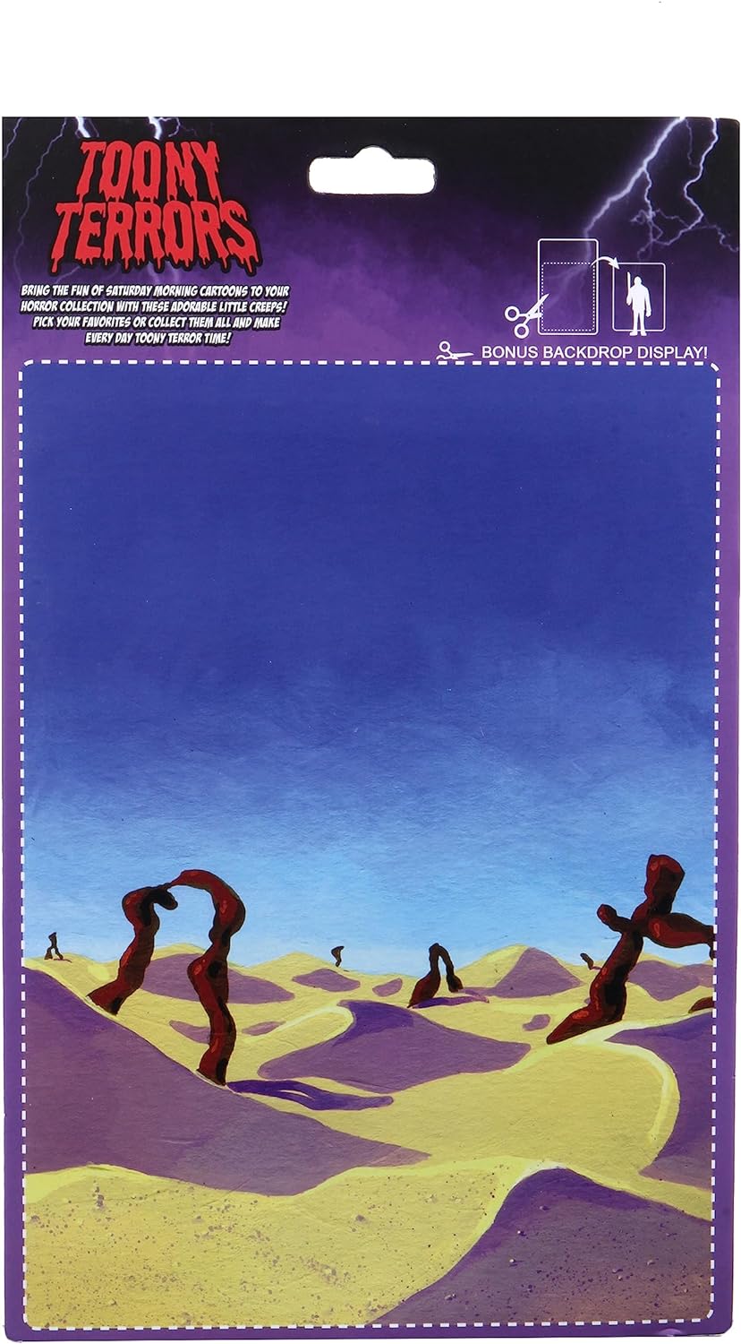 Series 4 of the adorably creepy Toony Terrors line will bring more stylized horror icons into the mix! Standing approximately 6 inches tall, the action figure Beetlejuice (Beetlejuice), comes in blister card packaging with a bonus cutout backdrop.
