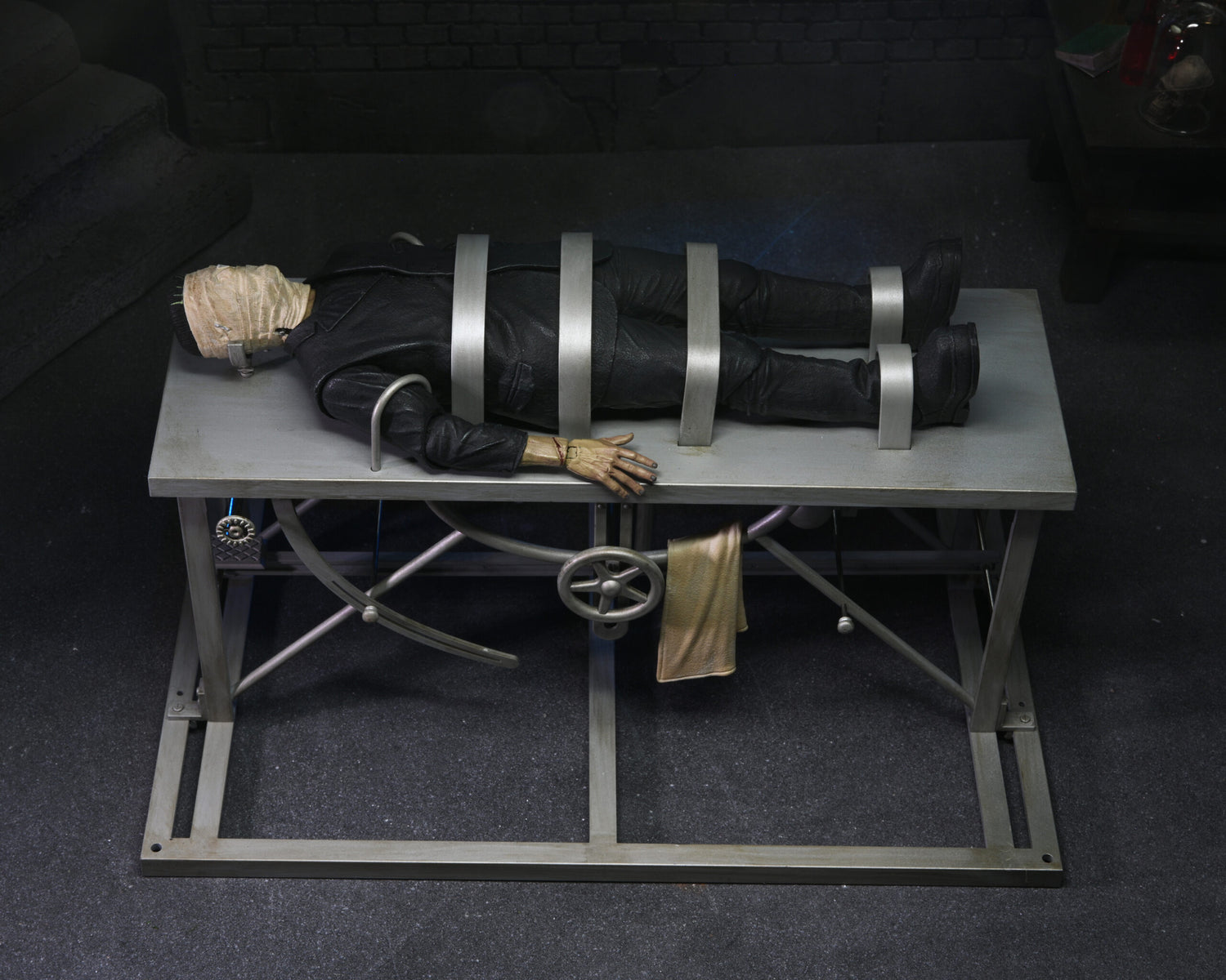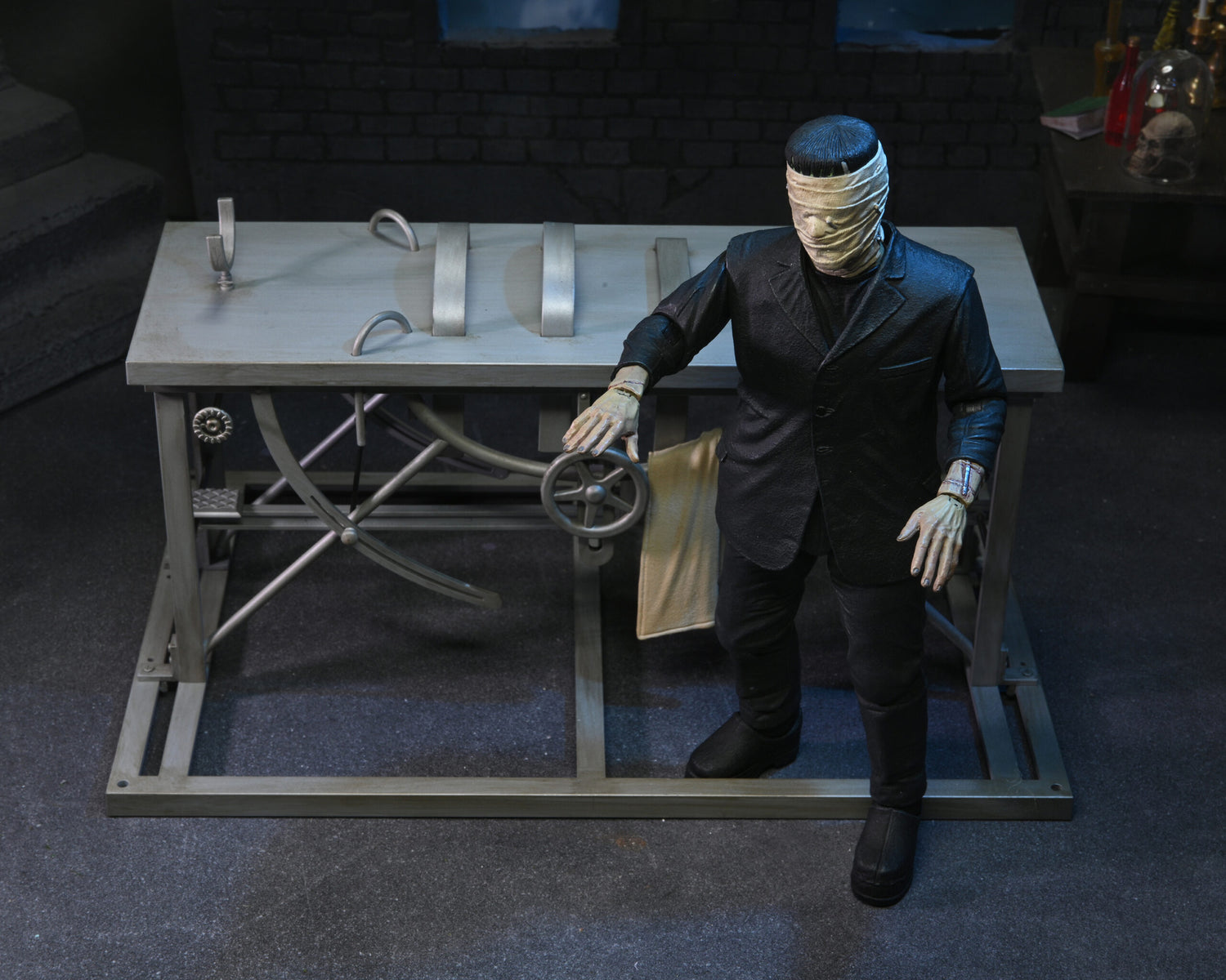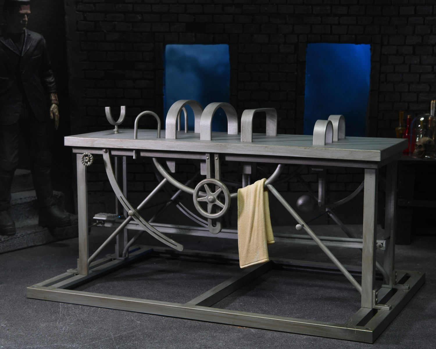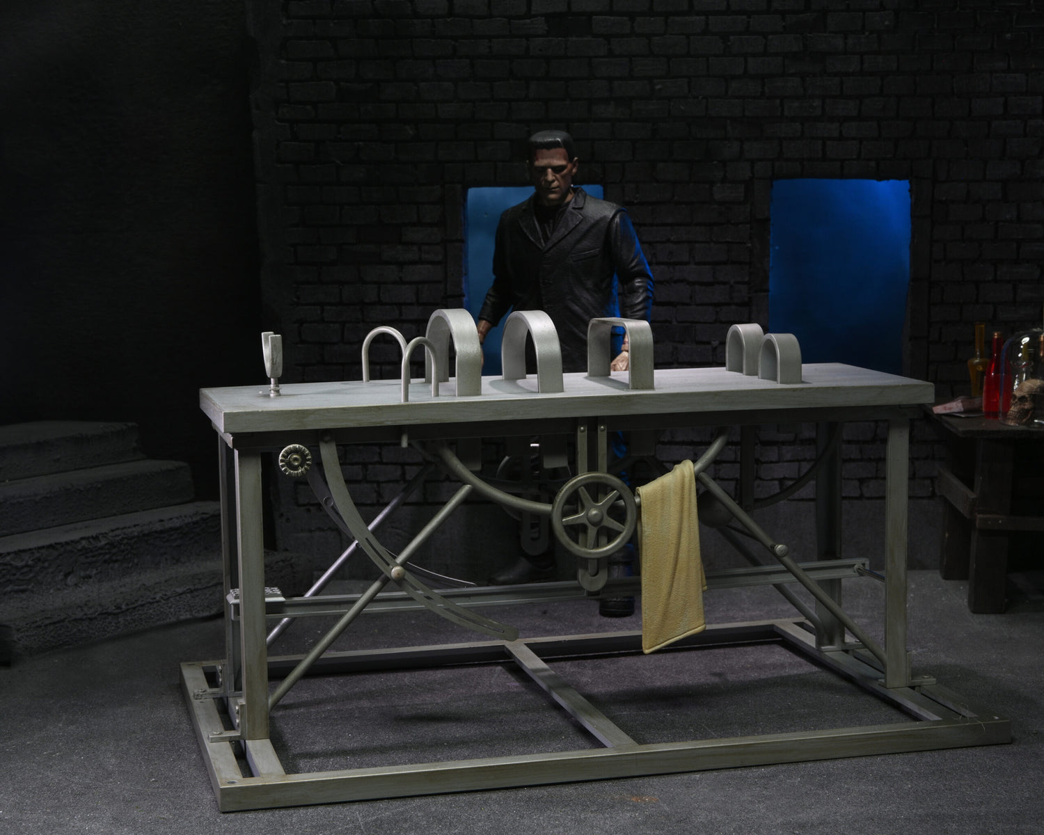 Accurate to the movie, the centerpiece of the set is the massive laboratory table, which measures over 9.5 inches long and over 6 inches wide and fits the NECA action figure (sold separately)