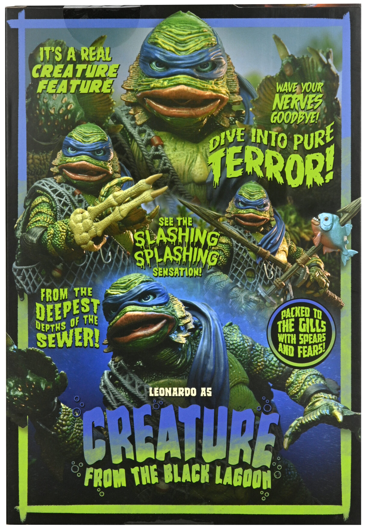 NECA’s newest release in its Universal Monsters x Teenage Mutant Ninja Turtles action figure line is Leonardo as the Creature from the Black Lagoon! This continuing line pays tribute to the world’s most famous turtles and Universal’s icons of horror.