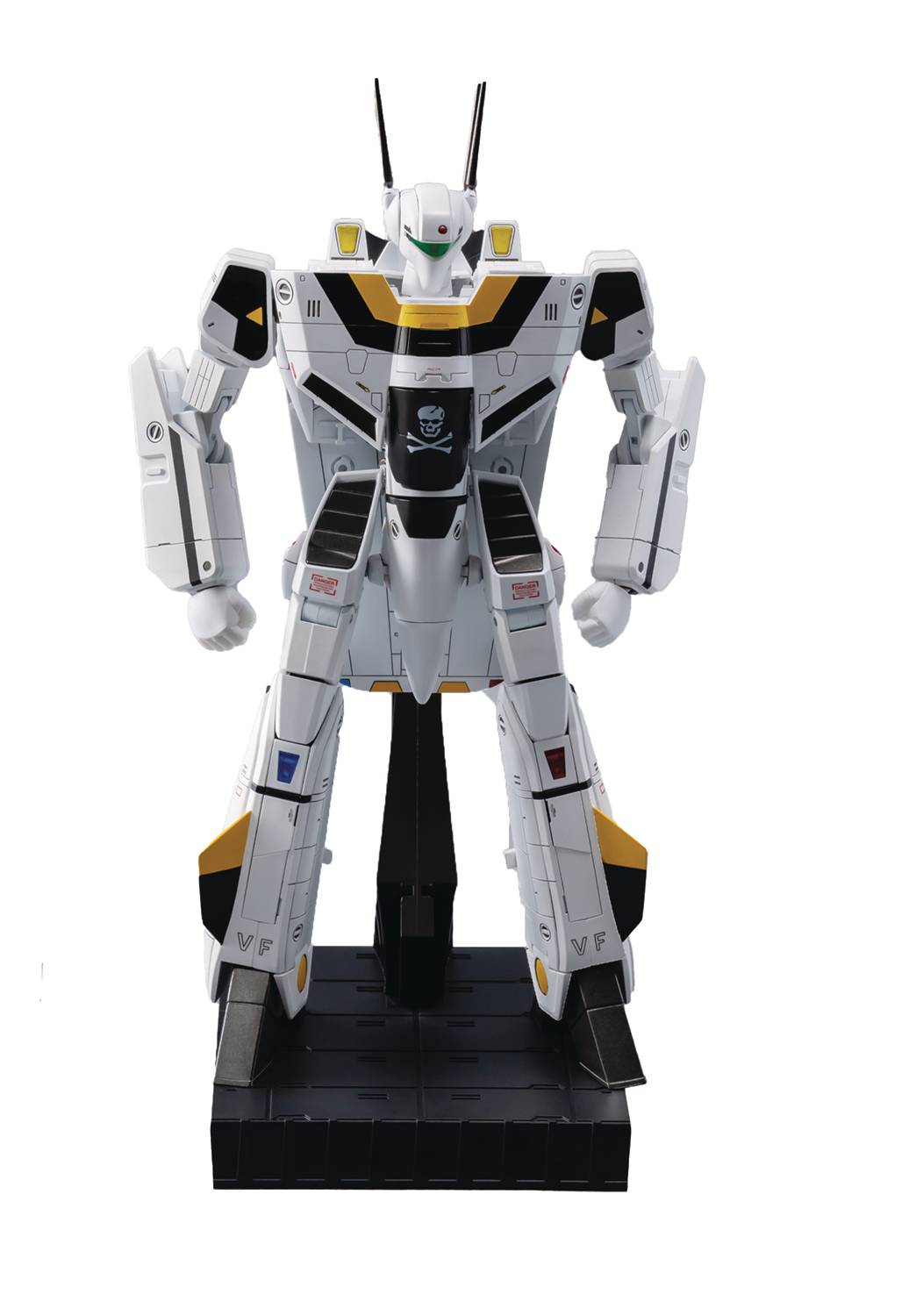 ROBO-DOU ROBOTECH VF-1S Veritech (Roy Fokker) is a high-fidelity collectible figure designed to capture the appearance as seen in the original anime television series with an extremely high attention to detail. With our specialized engineering, ROBO-DOU Robotech figures are presented with the same ultra-rigid framework that threezero is known for, ensuring structural integrity, a stable posing experience, and our signature paint application. ROBO-DOU ROBOTECH VF-1S Veritech (Roy Fokker) stands approximately 8" (20.3cm) tall in Battloid configuration, and can be fully-transformed between Fighter, Guardian, and Battloid modes. The zinc alloy die-cast interior frame provides a total of 109 points of articulation with an impressive range of movement. Accessories include the GU-11 Gunpod, four sets of Missiles, and four pairs of interchangeable hands